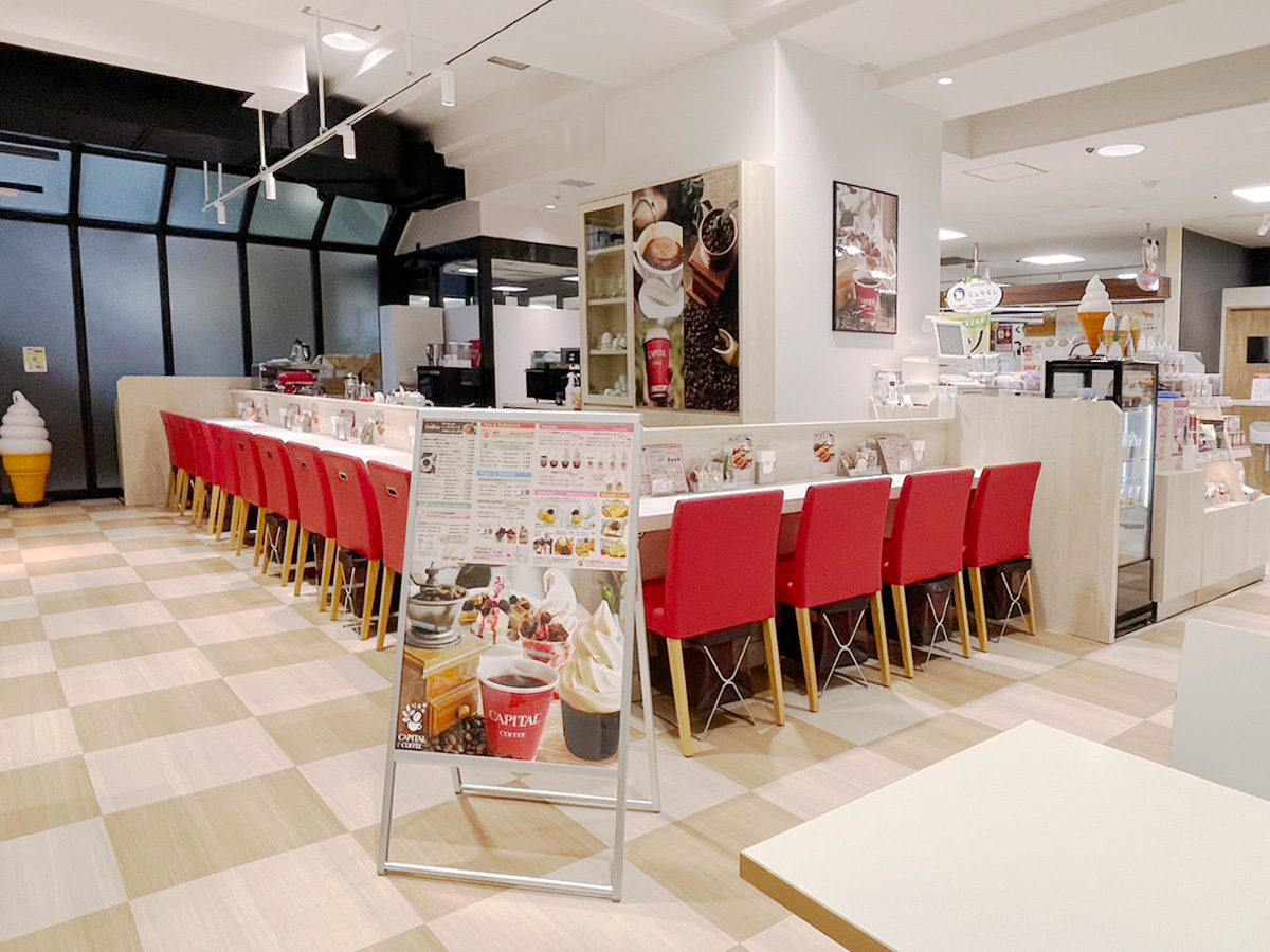 新たにスタンドカフェを設け、キャピタルで人気のコーヒーソフトクリームやコーヒーゼリー、スコーン、ワッフル、丁寧に抽出したハンドドリップコーヒーをお楽しみいただけます。