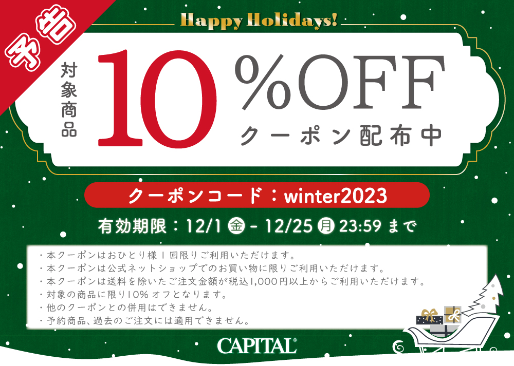 キャピタルコーヒーからのクリスマスプレゼントとして、キャンペーン期間中、キャピタルコーヒー公式ネットショップ限定でご利用できるクーポンを配布いたします。