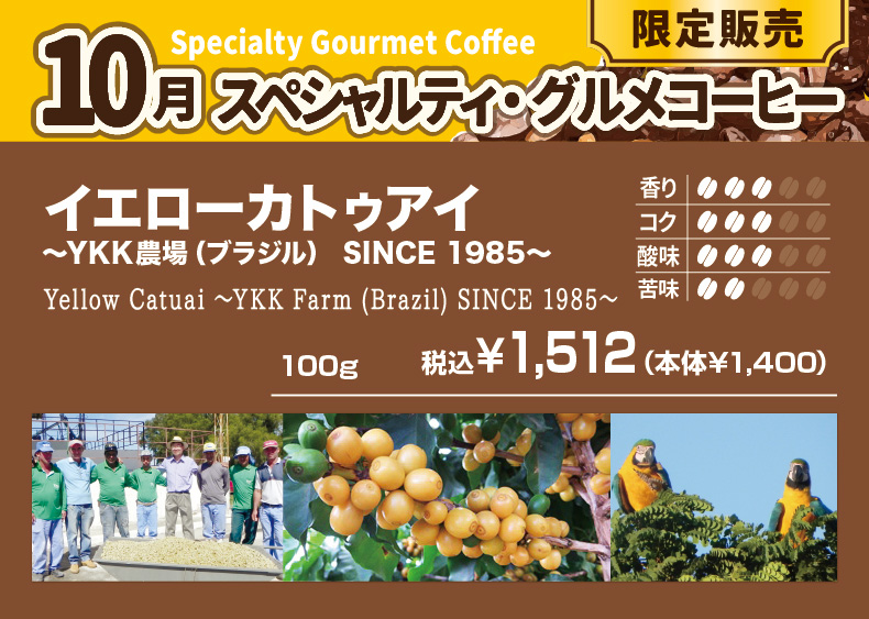 品質管理が行き届いた日系企業のブラジルYKK農場では、『完熟すると黄色に実る』コーヒーを栽培。