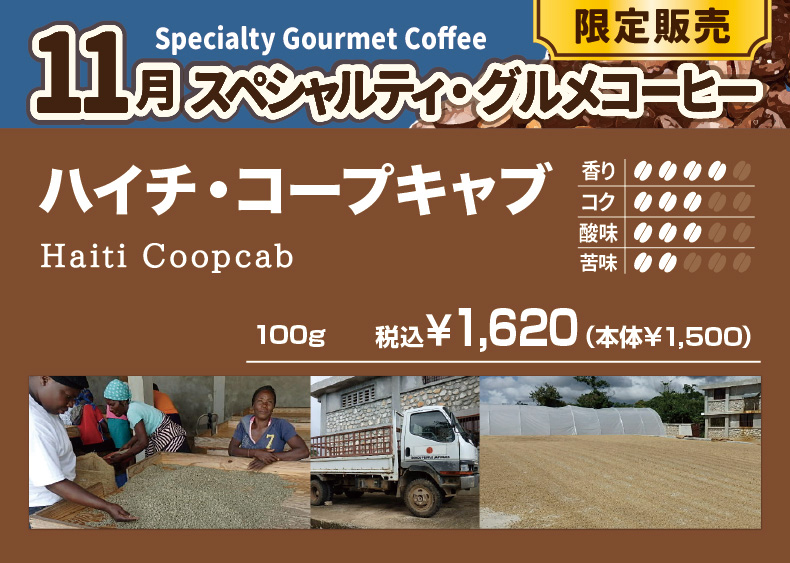 コープキャブ(COOPCAB)という組合組織で丁寧に仕上げられたコーヒーは、バランスが良く、柔らかな口当たりと甘い香りが特徴です。