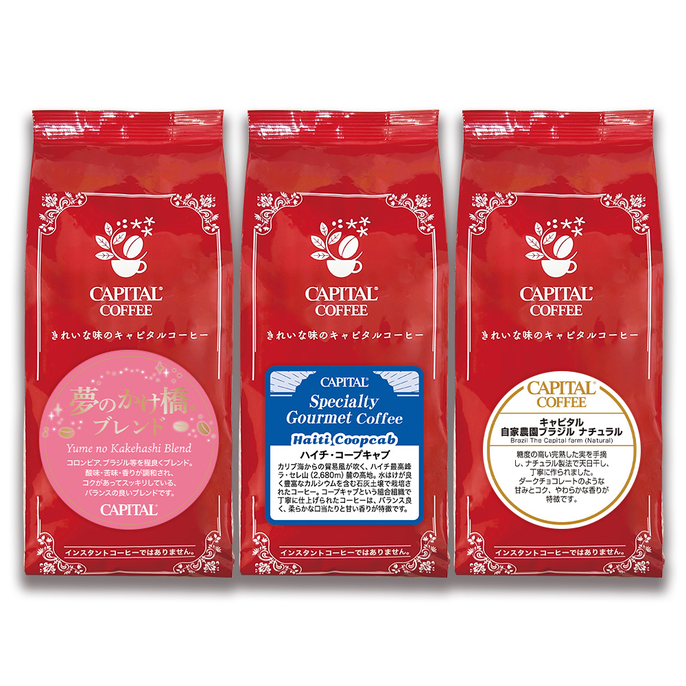 そんなコーヒー好きの方におすすめの、キャピタルコーヒーの様々な味わいをお試しできるセットです。