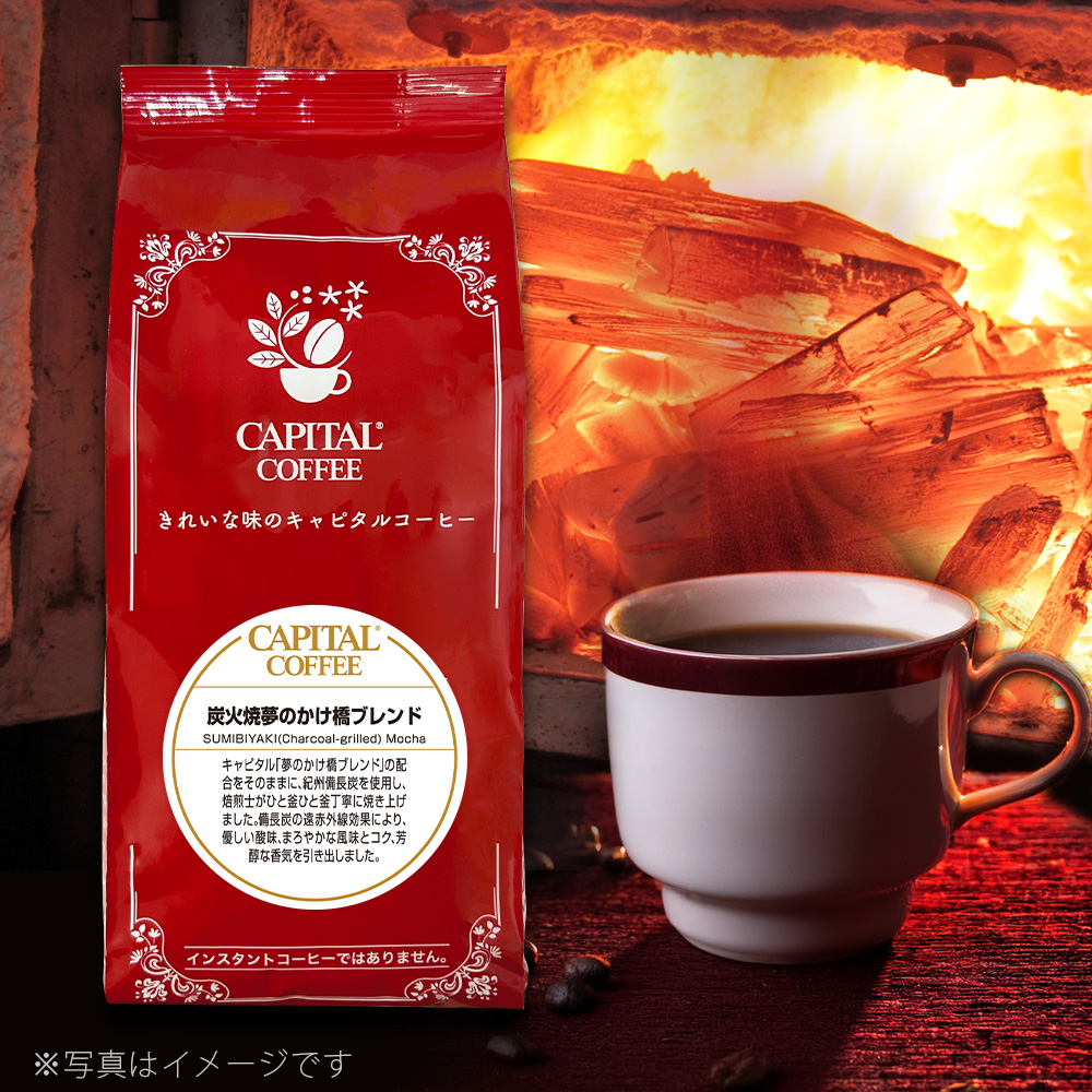 キャピタル人気No.1ブレンドの配合をそのままに、紀州備長炭を使用し、焙煎士がひと釜ひと釜丁寧に焼き上げました。備長炭の遠赤外線効果により、酸味を抑え、まろやかな風味とコク、芳醇な香気を引き出しました。