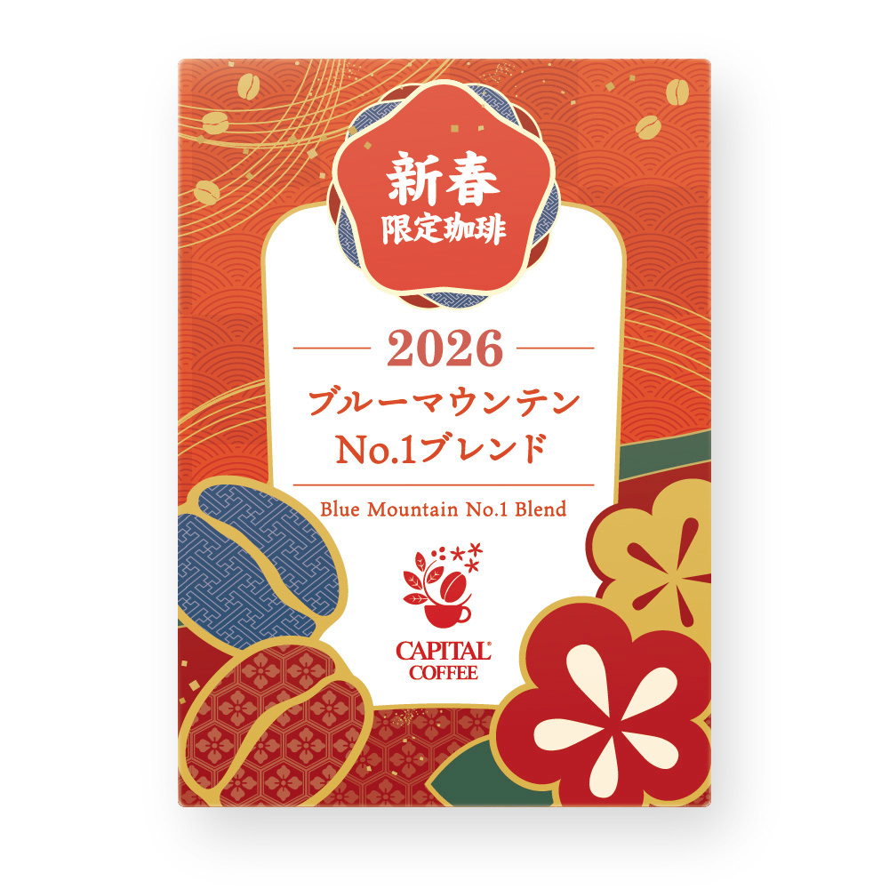 新春限定珈琲 ブルーマウンテンNo.1ブレンドは、ブルーマウンテンの中でも最高品質とされるNo.1グレードを主体にコロンビアなどを程よくブレンド。