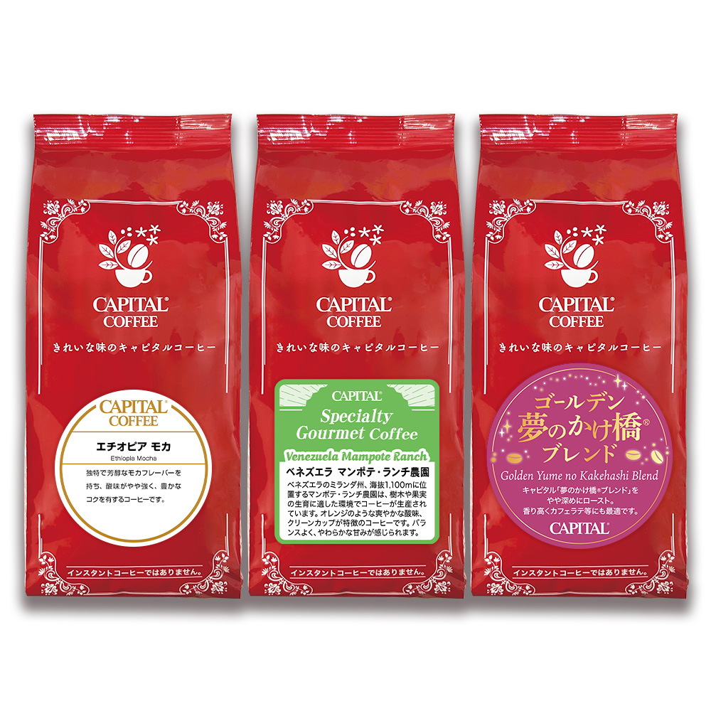 そんなコーヒー好きの方におすすめの、キャピタルコーヒーの様々な味わいをお試しできるセットです。