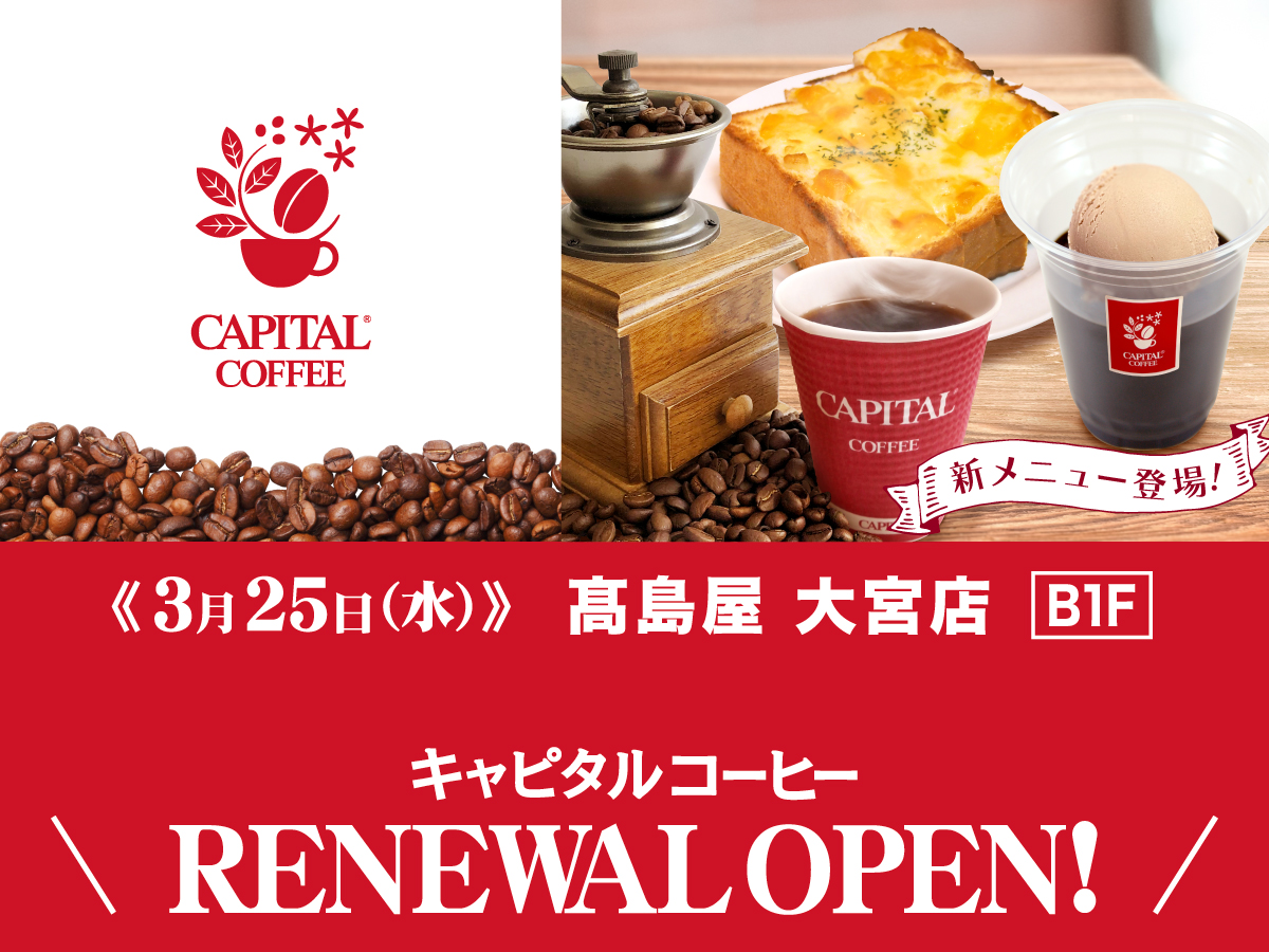 2026年3月25日(水)に「キャピタルコーヒー 髙島屋大宮店」がリフレッシュオープンいたします!