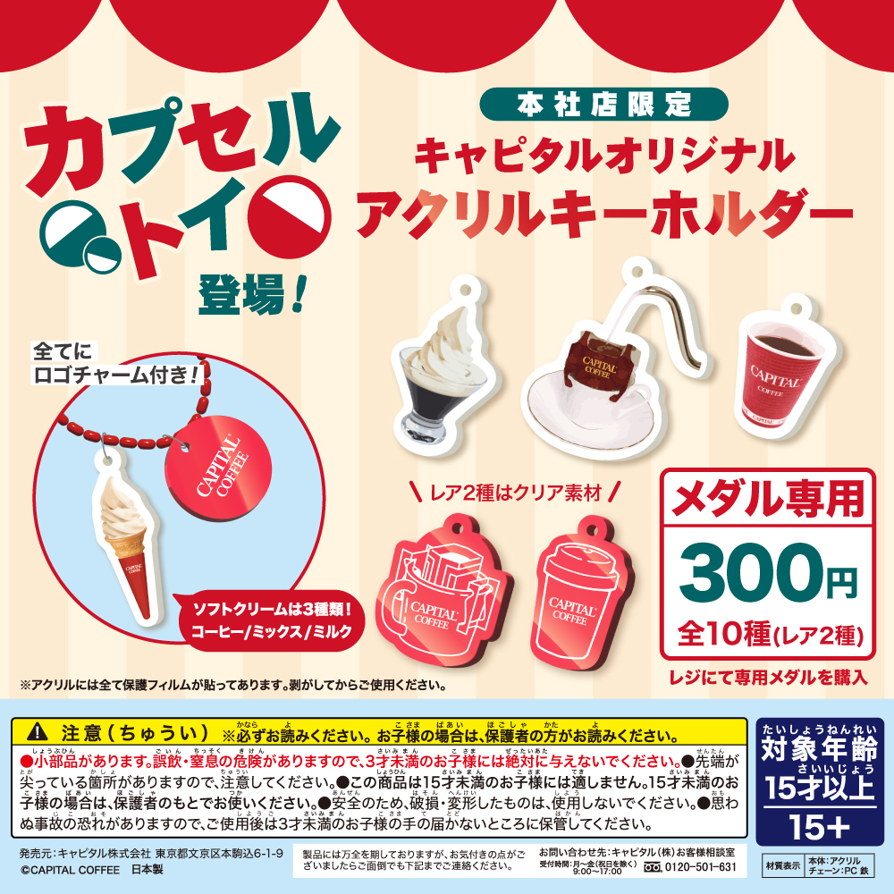 80周年を記念し、キャピタルコーヒー 本社店にてオリジナルアクリルキーホルダー カプセルトイが登場!